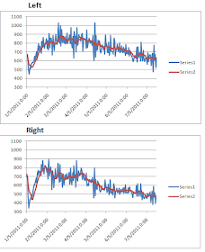 For the sake of visual completeness, here's total broken down by left and right to make the problem a bit more obvious (yes, I know I should make more useful graphics given the data, but these are fast to autogenerate):